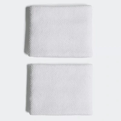 Die neuen Adidas Small White/Black Wristbands mit neuem Design, das das große Adidas-Logo aufweist, und einem Material, das Schweiß absorbiert und schnell trocknet.