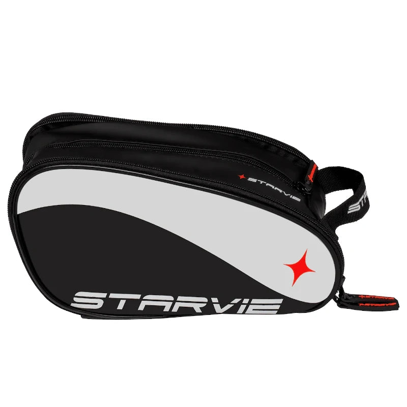 Die schwarze STARVIE Wave Kulturtasche mit weißen Details und rotem Stern besticht durch ihr elegantes und praktisches Design. Dank des geräumigen Hauptfachs und der zwei Seitentaschen lässt sich alles – von großen Kleidungsstücken bis hin zu kleinen Accessoires – problemlos verstauen. Ob beim Sport, auf Reisen oder im Alltag – diese Tasche vereint Funktionalität und Stil und ist der perfekte Begleiter für jeden Anlass.