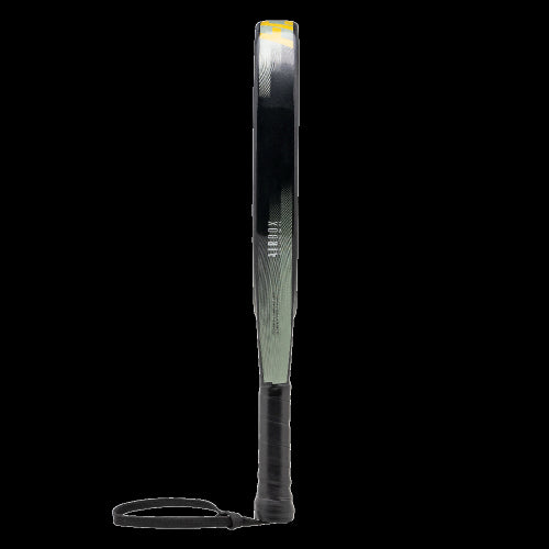 Ein Aushängeschild der Marke, hergestellt und designt in Spanien. Die Innovation liegt in der internen Luftkammer für einen verbesserten Ballrückprall. Gefertigt aus der klassischen 3K-Carbonfaser, die für hohen Komfort auf dem Platz sorgt, und einem mitteldichten schwarzen EVA-Gummi. Die tropfenförmige Form erhöht die Schlagkraft dank eines höheren Balancepunkts. Die raue, sandige Oberfläche maximiert den Spin.