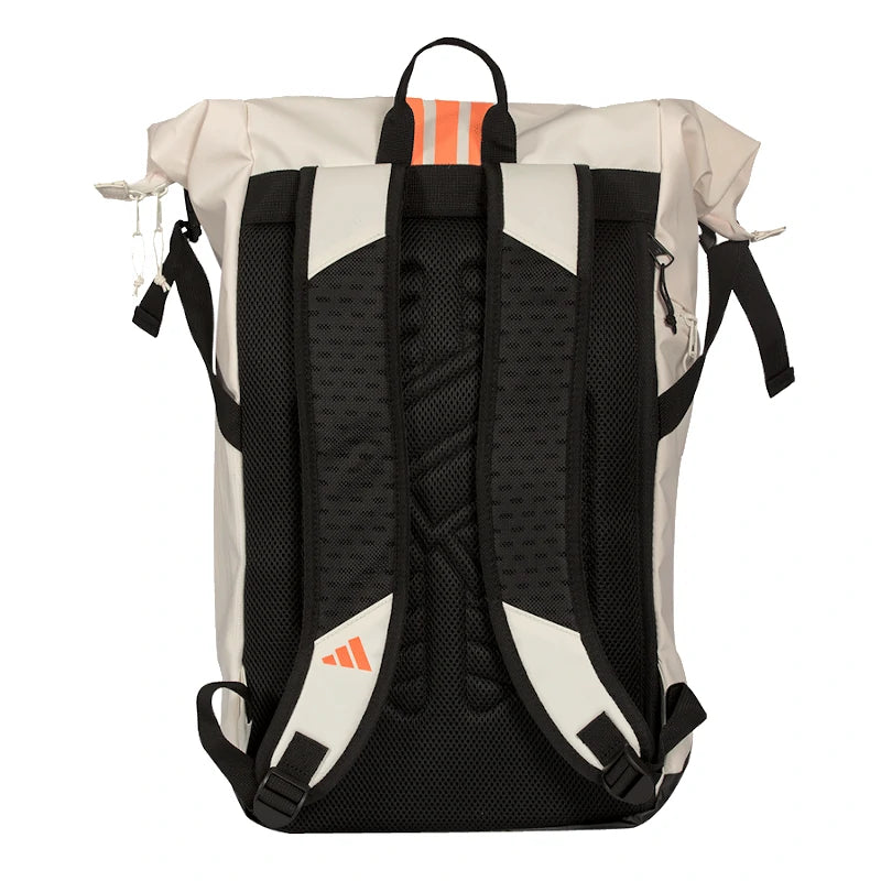 The Adidas Multigame Off White 2026 Backpack is the perfect accessory for those seeking design, comfort, and performance. Its modern white aesthetic with orange details adds a vibrant and elegant touch, ideal for standing out on and off the court.