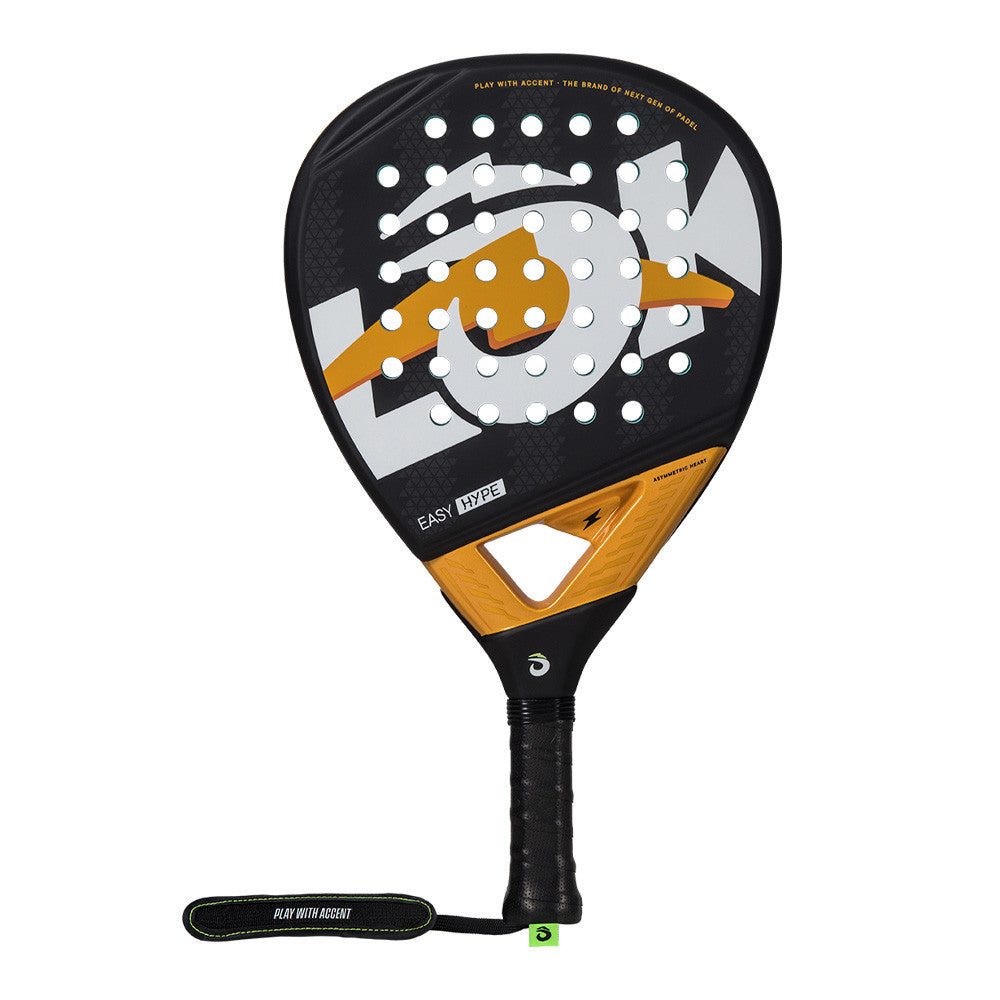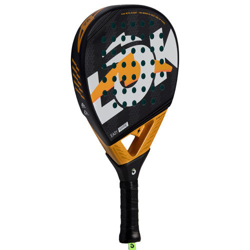 Una de las características principales de la pala Easy Hype es su corazón asimétrico, una tecnología que optimiza la distribución del peso en la pala para mejorar la maniobrabilidad y la estabilidad en cada golpe. Esto permite una respuesta más rápida y precisa en la pista, lo que resulta en golpes más efectivos y consistentes. La pala cuenta con superficie de fibra de carbono mixto que contribuye a ser una pala con un tacto de confort alto sin olvidarnos de que es una pala enfocada en el ataque por su forma en diamante y punto dulce elevado. Cuenta también con el sistema Gradual Face que son escalones y relieves que ayudan a reducir la vibración en el golpeo. Además cuenta con tecnología de refuerzos de carbono, que consiste en la integración estratégica de capas adicionales de carbono en puntos clave del marco que aumentan la rigidez y la durabilidad de la pala. Por último, dispone de Confort Wristband, una muñequera ajustable.