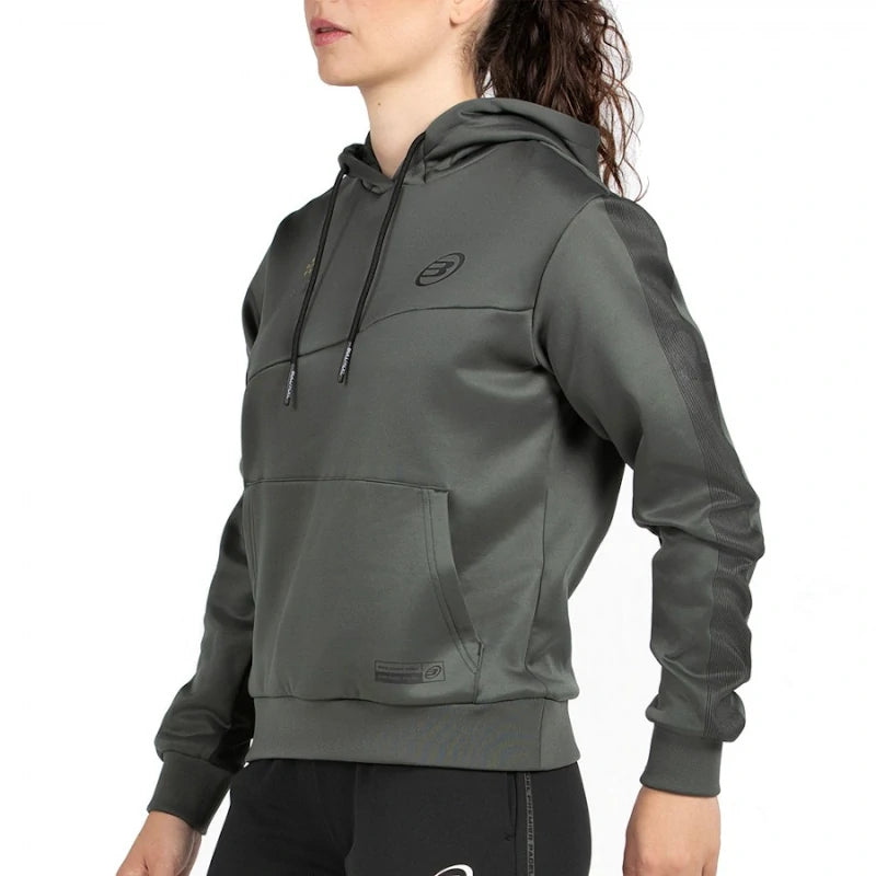 Diseñada para ofrecer máximo confort y con un estilo deportivo, esta sudadera está confeccionada en tejido de punto de doble cara en poliéster y elastán con interior perchado que aporta calidez y suavidad. Presenta un diseño asimétrico con piezas a contraste en el lado derecho, una banda con gráfico en la manga izquierda y un bolsillo tipo canguro muy funcional, que le dan un toque moderno y dinámico. Los gráficos exclusivos de Premier Padel completan una prenda que combina rendimiento, diseño y actitud competitiva dentro y fuera de la pista.