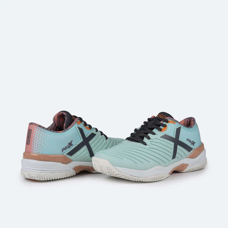 Las Zapatillas Munich PADX 47 Turquesa, este modelo PADX se caracteriza por su resistencia en el empeine por su material TPU inyectado.