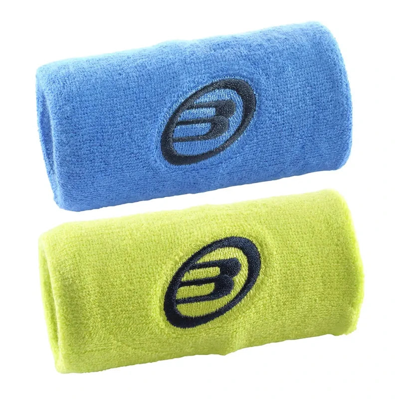 Las Muñequeras Bullpadel BPMU252 Azul Tinta/Amarillo Fluor, con un diseño nuevo elegante y llamativo, perfecta para absorber el sudor.